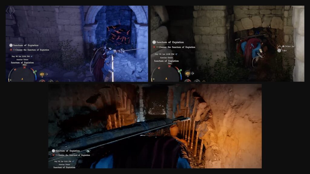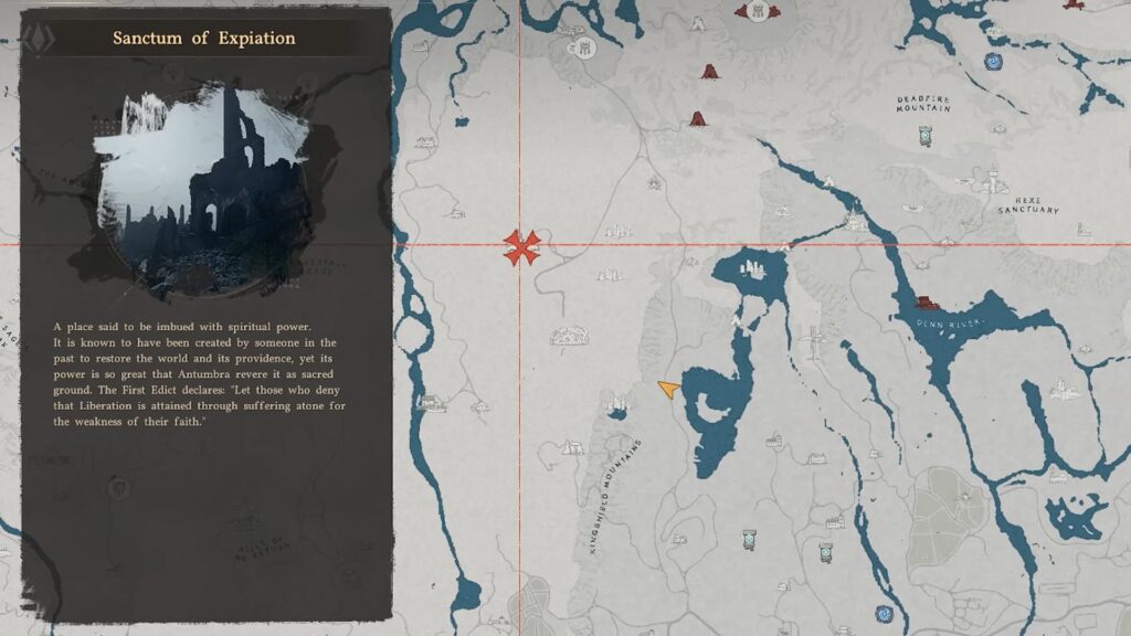 - Look for the Sanctum of Expiation, a ruin-like structure hidden within icy terrain