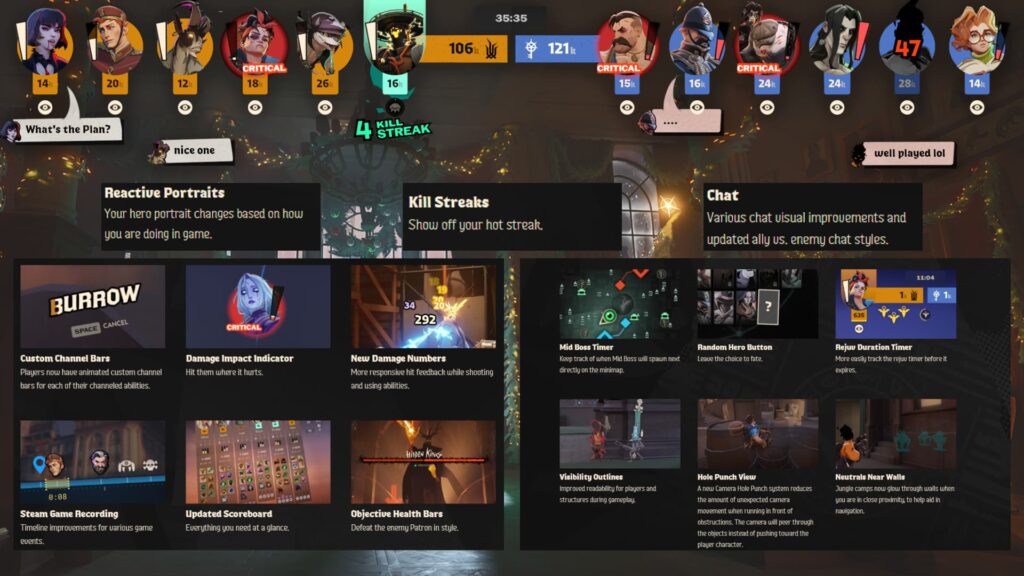Additional quality-of-life updates include mini-boss timers, Rejuvenation duration indicators, and a random hero button, further streamlining match awareness.