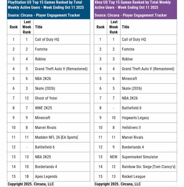 The long-running rivalry between Call of Duty and Battlefield is officially back on. According to the latest data from market research firm Circana, for the week ending October 25, 2025, Call of Duty HQ (the combined hub for Modern Warfare III and Warzone) was the second most-played game across both PlayStation and Xbox in the United States. The number-one spot, as usual, went to Fortnite, which continues to dominate the charts week after week.