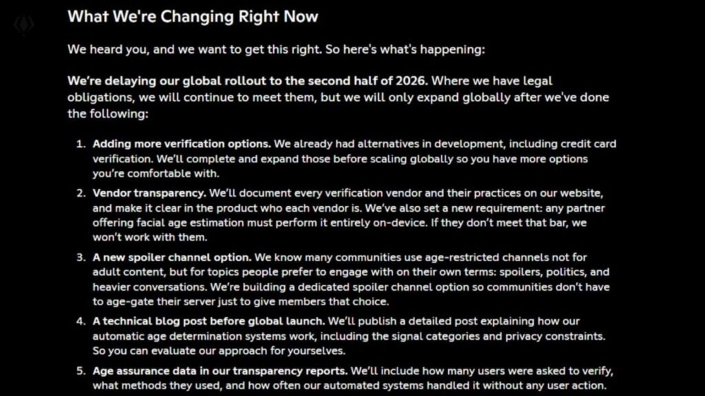 Discord’s planned age verification system has hit pause. After facing criticism from users over privacy concerns and implementation details, the company has officially announced that it is delaying the global rollout of its age verification system until the second half of 2026.