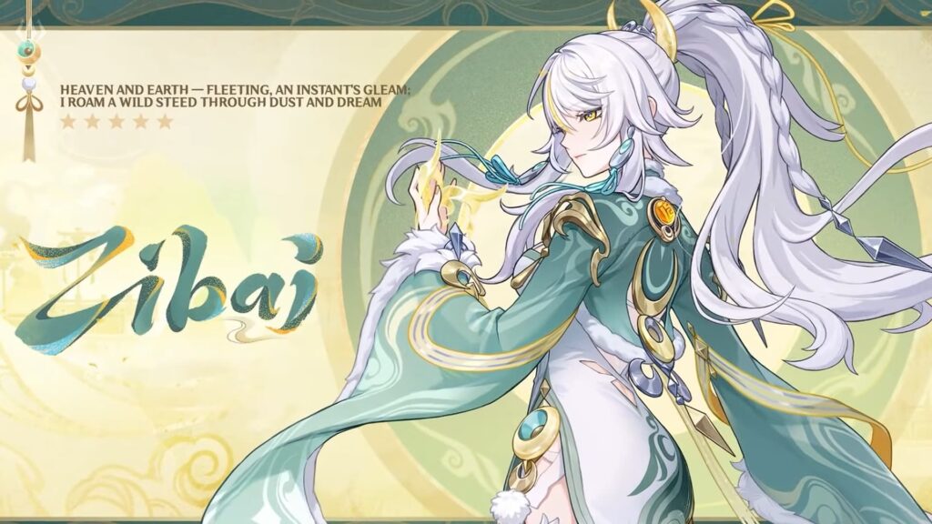 Zibai stands out as one of the most visually poetic additions in Luna IV. Introduced under the title “Heaven and Earth, Fleeting as a Gleam,” the character’s design emphasizes motion, balance, and impermanence. Flowing garments, soft color gradients, and gold accents suggest a figure constantly in transition; never fully grounded, never fully distant.