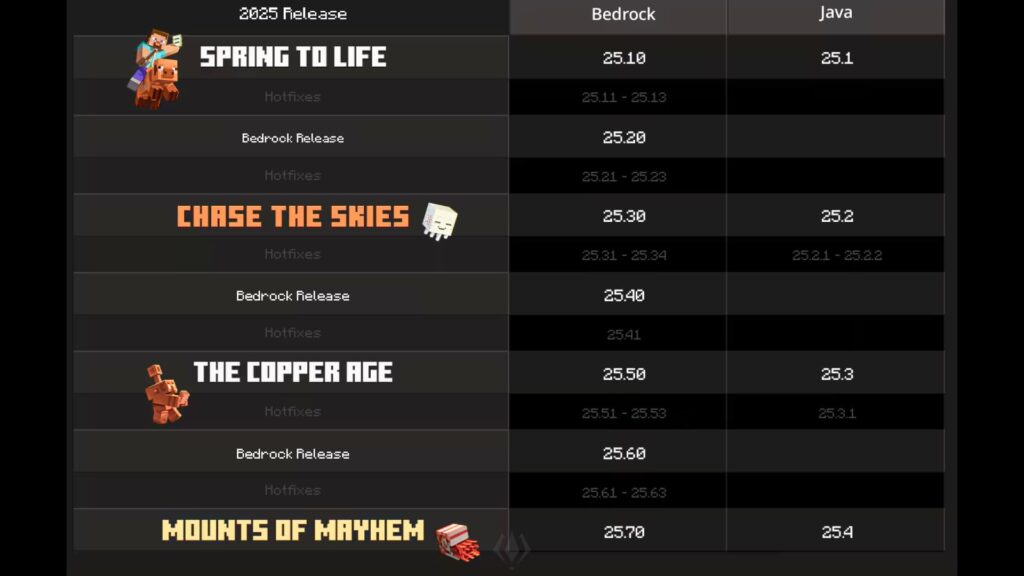 Mojang says it makes updates easier to track in a year filled with multiple drops. Instead of juggling 1.xx numbers forever, each new drop clearly ties to a moment in the game’s yearly roadmap.