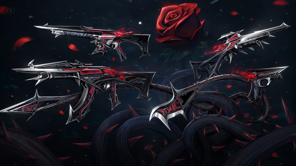 A new cosmetic bundle may soon be arriving in VALORANT, according to recent reports circulating within the community. The upcoming collection is rumored to feature a rose-themed weapon skin set, giving several weapons a dark floral aesthetic.