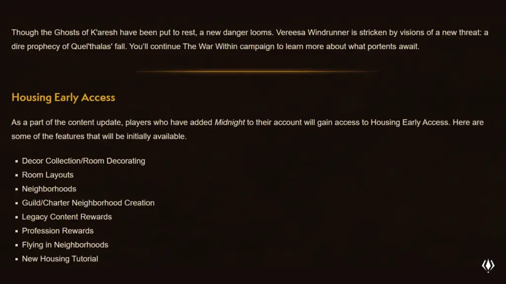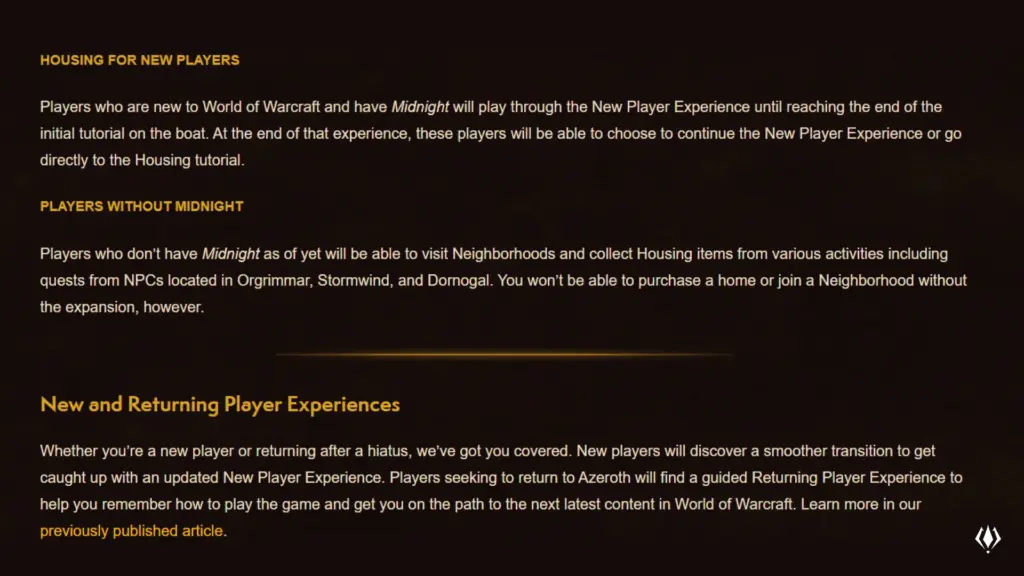 The World of Warcraft team stated that this trial period will focus primarily on the housing system, though players will also have limited access to PvE content and select quest areas. The event will run from October 14 to 21, during which Blizzard plans to gather player feedback with the goal of making the housing feature a permanent addition to the game.