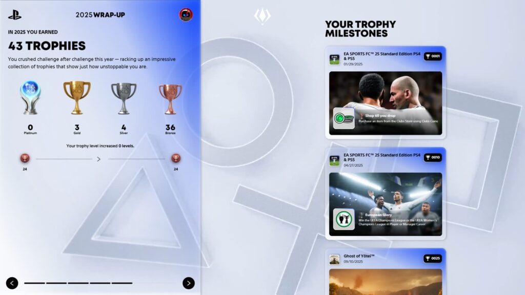 One of the highlights is the Top 5 Games list, where each title is ranked by total hours played, trophy progress, and its share of your yearly playtime. Whether your year was dominated by a single blockbuster or spread across multiple genres, these stats make it easy to see which experiences shaped your 2025.